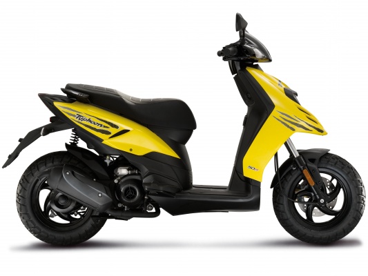 Компания Piaggio представила новый Typhoon 50 по очень соблазнительной цене – всего 1400 евро или 1850 долларов США. Новинка интересна внешне и показывает прекрасные результаты по динамике и скорости, благодаря обновленному двигателю. Двигатель теперь четырехтактный, четырехклапанный, объемом 49 см3. Охлаждение – воздушное. Также новинка оборудована 14 дюймовыми колесами и большим баком. Новый двигатель способен раскрутиться до 9500 оборотов, выдавая при этом 4,5 л.с. мощности. Максимальный крутящий момент достигается при 8000 оборотах. При этом максимальная скорость составляет скромный по итальянским меркам 65 км/ч.